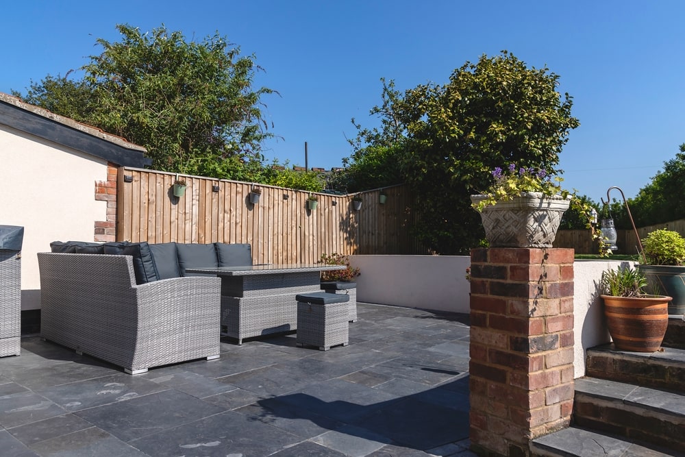 Même si une terrasse en pierre naturelle peut sembler onéreuse au départ (jusqu’à 120 € par mètre carré), elle nécessite peu d’entretien comparée au bois qui demande des traitements réguliers.
